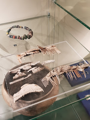 A little visit to Gustavianum 🙂 Gustavianum is a must if you ever visit Uppsala in Sweden. They have some vendel/viking stuff but also egyptian and all kinds of stuff related to the Uppsala university that is Swedens oldest one.Viking bling. From above; turtle brooches, clothing fibula for closing cape or coat, armrings.Glass pearl necklace and combs.Necklace and another fibula. nr2 I dont recall what it was. Maybe somebody can fill me in on that?Drinking glass that has been glued together. Pretty color!Scissor.Warior gear. Under the glas floor is a reconstruction of a boat grave.Scissor and game pieces (is that the correct word?)More game piece.Cooking potsSaxSpear. Look at that decoration!Ring claspsHelmet!My favourite item here is this embroidery from a collar from Valsgärde.Here is a bad panorama on a very cool room, its the universitys old anatomy theatre from 1663! -